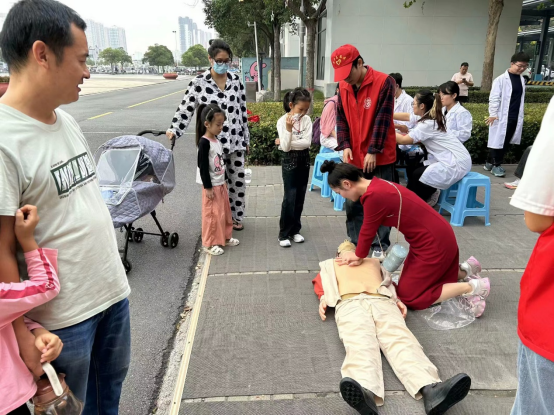 活动开始,应急青协成员和应急青马班成员为群众现场演示详细的心肺复苏和海姆立克救援方法,并邀请群众现场参与模拟演练,让他们亲身体验应急救援过程,加深对救援方法的理解和记忆,群众积极参与,并表示他们不仅学到了适应的应急救援知识,还增强了自我保护意识。紧接着,应急青协成员向过往群众普及应急救援知识,包括溺水自救、抽筋自救、烧烫伤急救等常见的应对措施,详细的知识科普加强了群众的安全意识。最后,体育青协成员进行武术操分解演示,为现场群众表演太极拳和五步拳,划出的一步一拳不仅展示出公司员工的气魄,也加深了群众对武术文化的了解和认识。